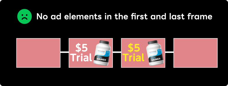 Make sure to put advertising elements (e.g. a product image, a tagline) in the first and last frames.