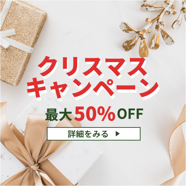 プレゼントボックスとリボンを背景に、「クリスマスのご褒美ギフト」と書かれた期間限定キャンペーンのバナー。
