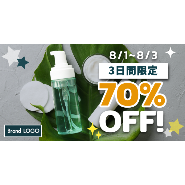 商品やブランドを中央に大きく配置し、余計な装飾を省いたシンプルなデザインが効果的です。