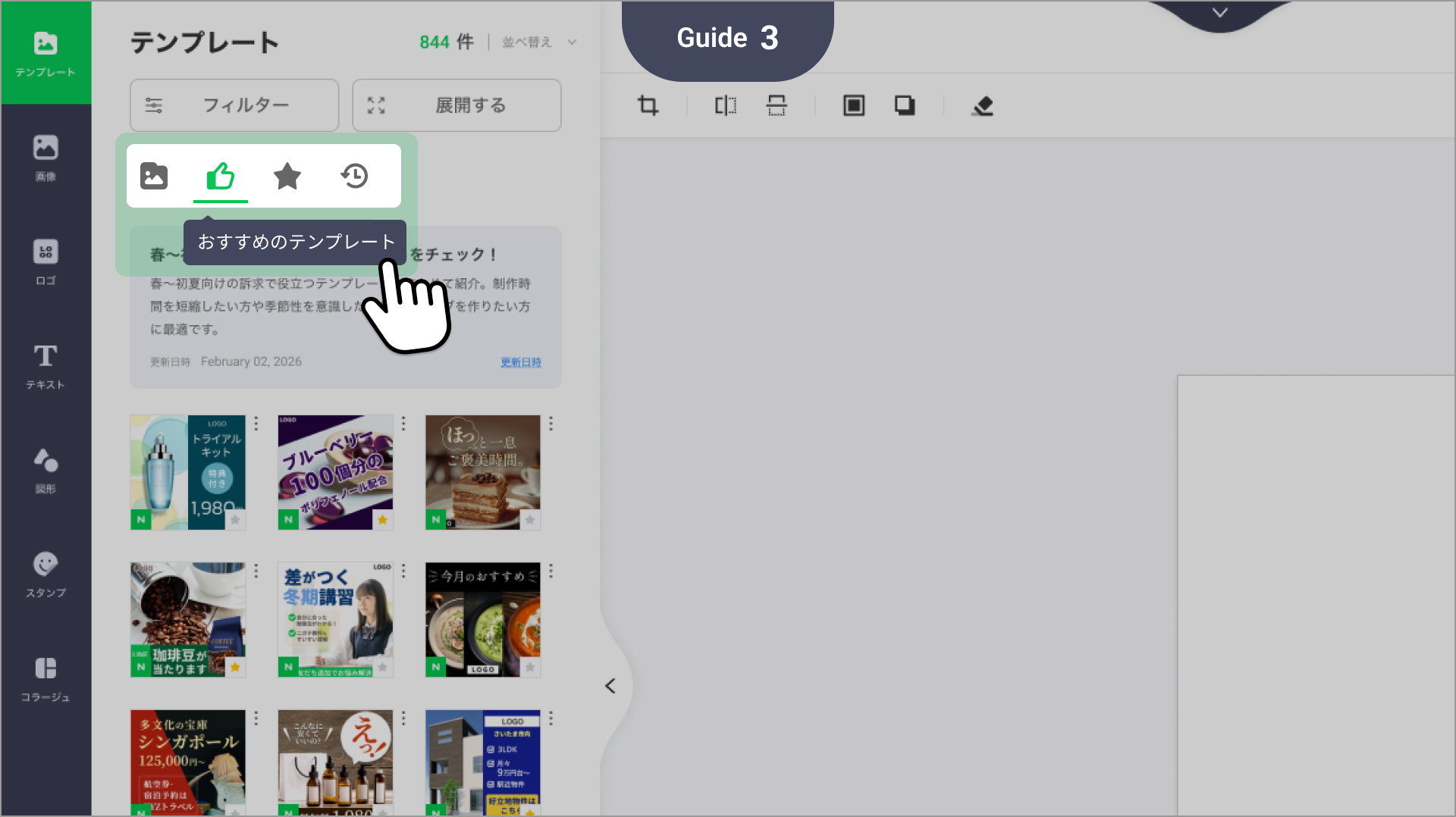 - 方法2:画像エディタ内の[おすすめのテンプレート]タブから、最適なデザインをすぐに適用