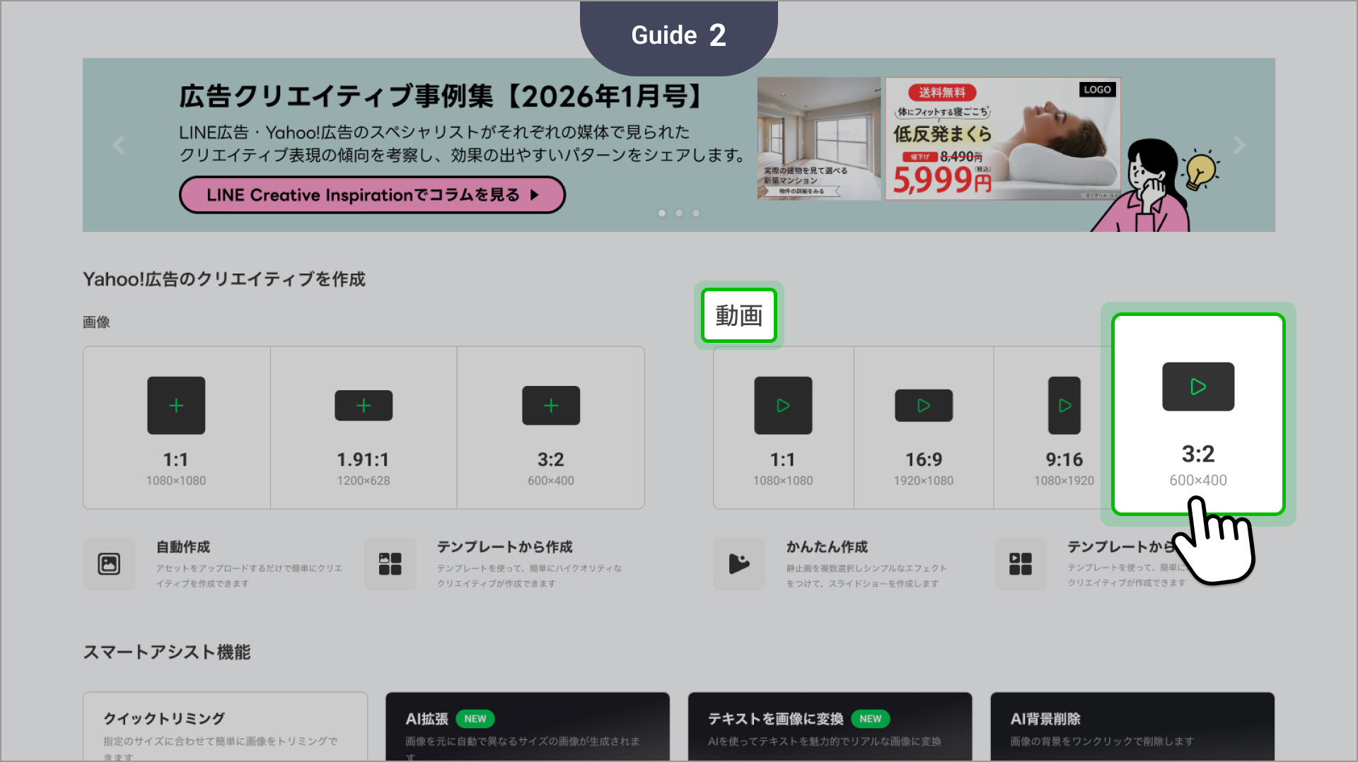 - Yahoo!広告 ディスプレイ広告の仕様に準拠したアスペクト比「3:2」の画像・動画作成に対応